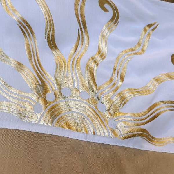 Tunica de Voile de rayon pesado.Con detalles en foil, hombros descubiertos.